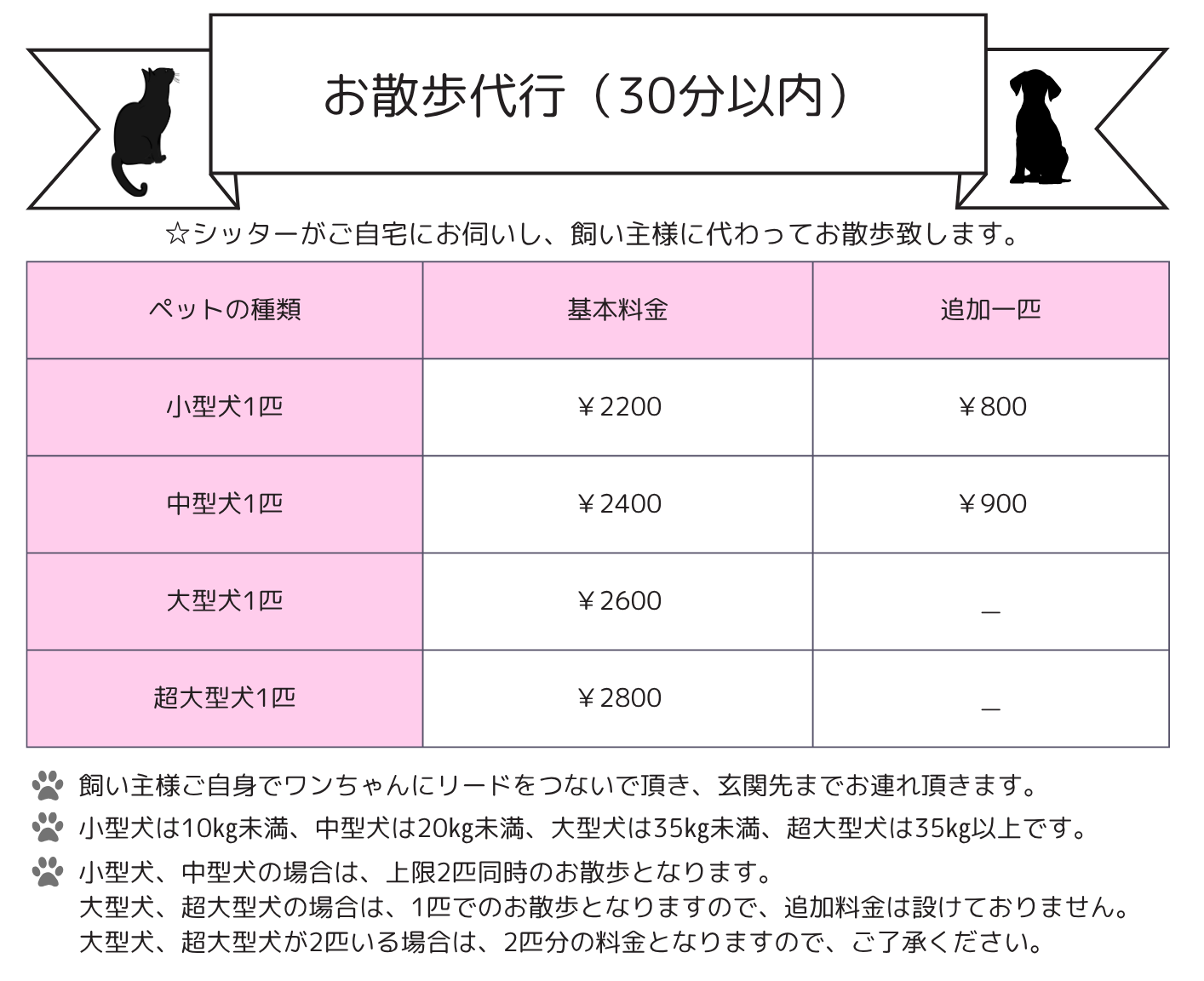 お散歩に行けないのでお散歩のみの代行など、様々なケースで